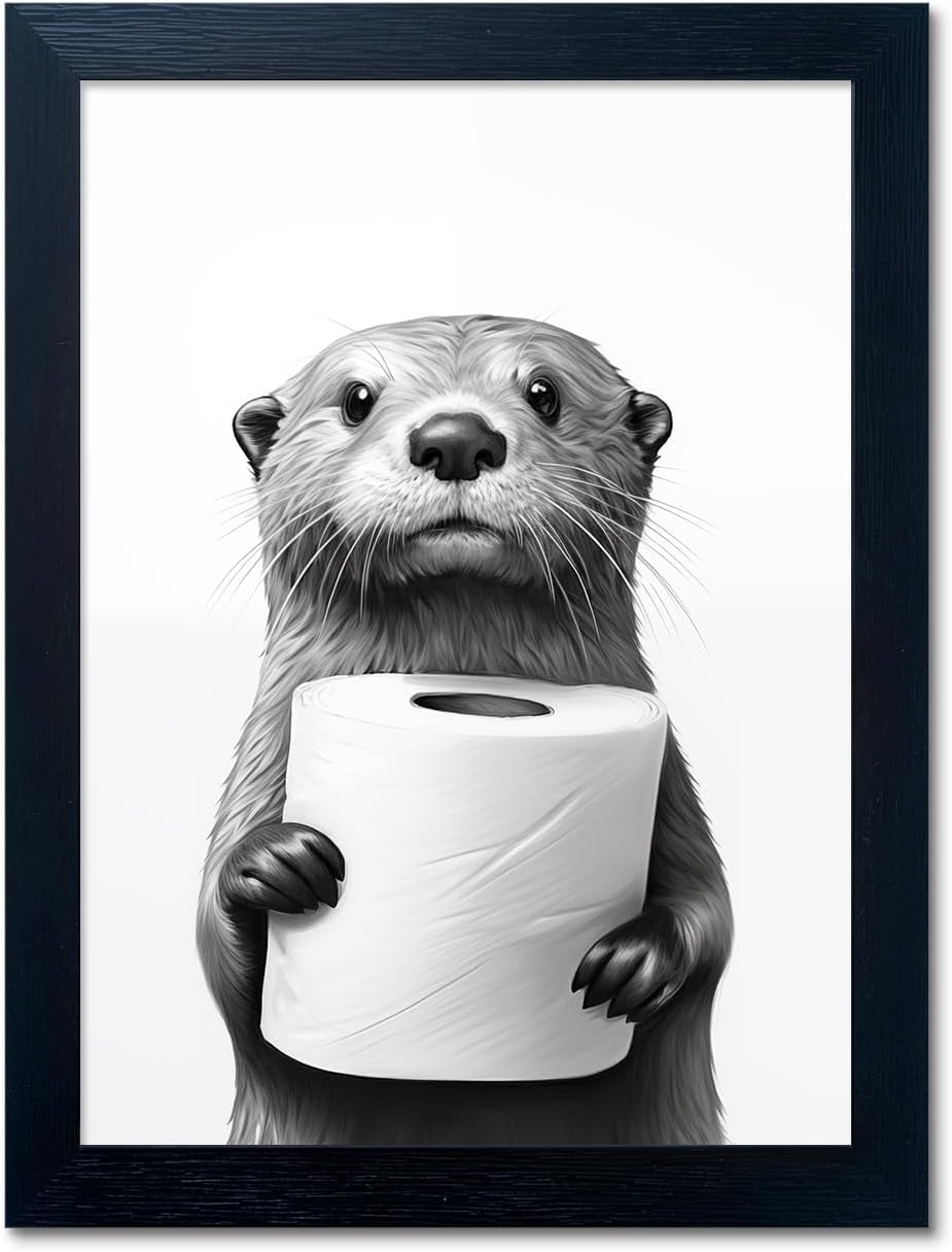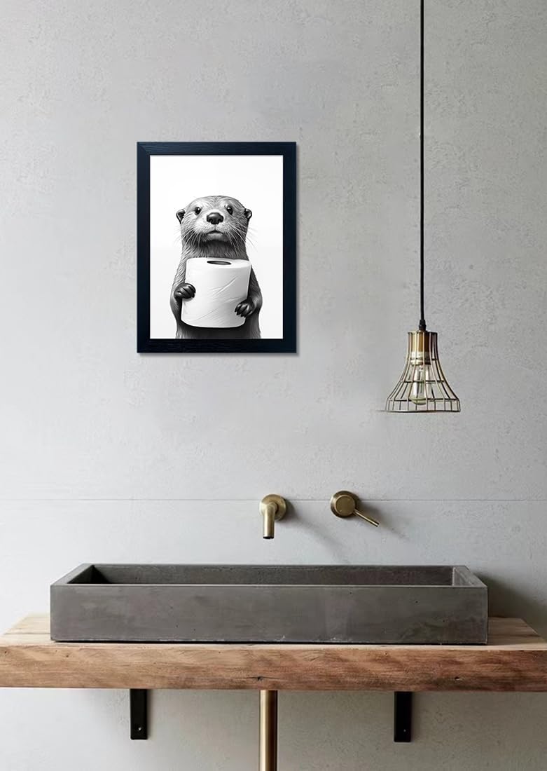 Transform your bathroom into a whimsical retreat with our Bathroom Picture Wall Decor. This charming framed black and white wall art features an adorable raccoon playfully holding a roll of toilet paper, adding a touch of humor and personality to your space. The high-quality canvas print is designed to withstand moisture, making it perfect for any bathroom setting. Measuring at a versatile size, it fits seamlessly into any decor style, whether modern or rustic. The sleek black frame enhances the artwork while ensuring durability. Perfect for animal lovers and those who appreciate a good laugh, this unique piece is an ideal gift for housewarmings, weddings, or just to treat yourself. Elevate your bathroom decor with this delightful and eye-catching canvas print today!