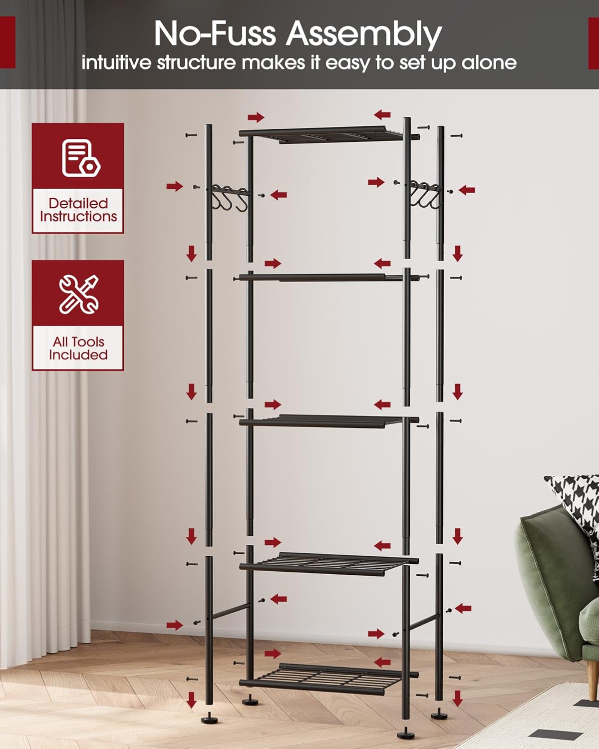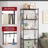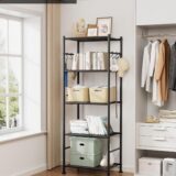 Measuring 18.1″ x 12.4″ x 56.8″, the Sakugi Storage Shelves offer ample space for storing everything from tools and equipment to books and decorative items. The included hooks provide additional hanging storage for items like bags, hats, or kitchen utensils, ensuring that you can keep everything organized and within reach.